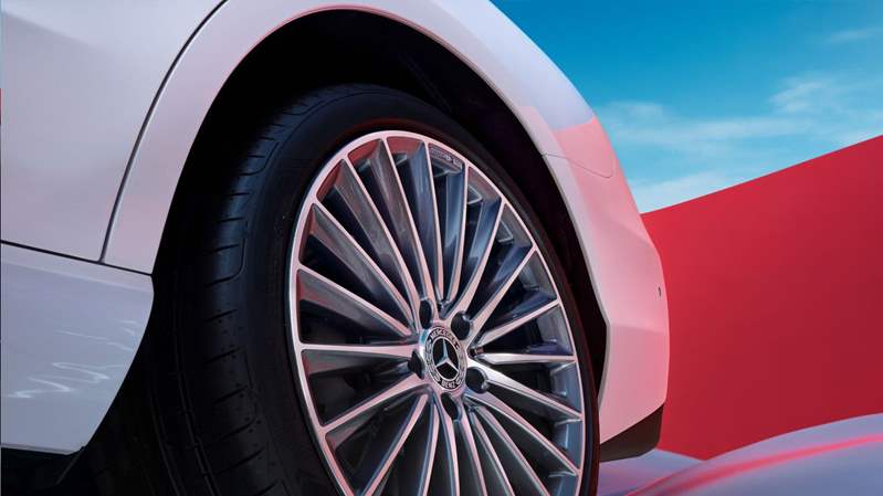 وبكل وضوح يمكنك أن تلمح من الخارج، شبكة مدمجة في الإكصدام الأمامي بحواف مستديرة و علامات النجمة المنتشرة على سطح الشبكة مع كاميرا أمامية مفصولة، وتقع أعلى علامة مرسيدس.