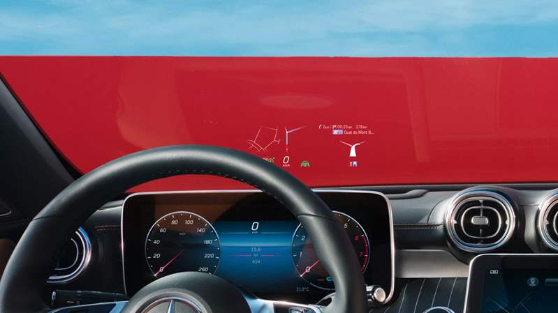 تستغني C-Class W206 الجديدة أيضًا عن نظام الشاشة العريضة المزدوجة، لتبني لوحة عدادات منحوتة للغاية تبرز منها لوحة العدادات الرقمية بدون قبة علوية، وشاشة مركزية ضخمة يبدو كمتداد للكونسول الوسطي العريض.