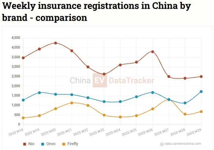 رغم تسجيلها 7,400 مركبة هذا الأسبوع (+5.7%)، إلا أن الأداء السنوي للي أوتو تراجع بشكل ملحوظ بنسبة 42.19%. وبلغ إجمالي تسجيلاتها في يوليو 28,890 مركبة.