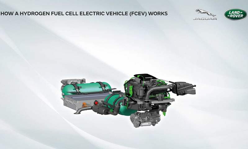 وكما رأينا في السيارة تويوتا ميراي الشهيرة التي تعمل بخلايا الهيدروجين، فإن الانبعاث الوحيد الذي يخرج من العادم هو الماء النقي الناتج عن التفاعل الكيميائي في خلية الوقود. تقول لاند روفر إن السيارة التي تعمل بالوقود الهيدروجيني لها العديد من الفوائد، بما في ذلك التزود بالوقود السريع والحد الأدنى من فقدان النطاق في المناخات الباردة. لا تزال البنية التحتية مصدر قلق ، لكن وكالة الطاقة الدولية (IEA) تقدر أنه سيكون هناك 10000 محطة للتزود بالوقود بالهيدروجين بحلول نهاية العقد.