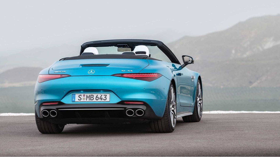 كشفت مرسيدس عن السيارة AMG SL43، وقد منحتها للمرة الأولى محركًا تربو رباعي الأسطوانات، بدلاً من المحرك V8 مزدوج الشاحن التربو.