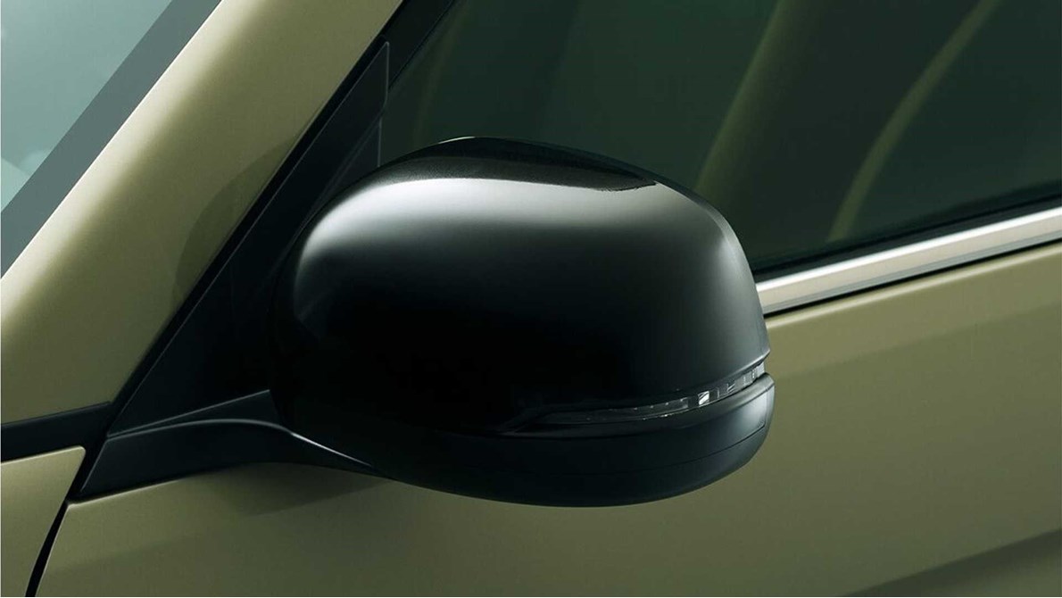 أغطية المرايا الجانبية ومقابض الأبواب سوداء اللون، ويأتي لون الجسم الخارجي إما Garden Green Metallic أو Platinum White Pearl أو Meteoroid Gray Metallic أو Premium Ivory Pearl II.