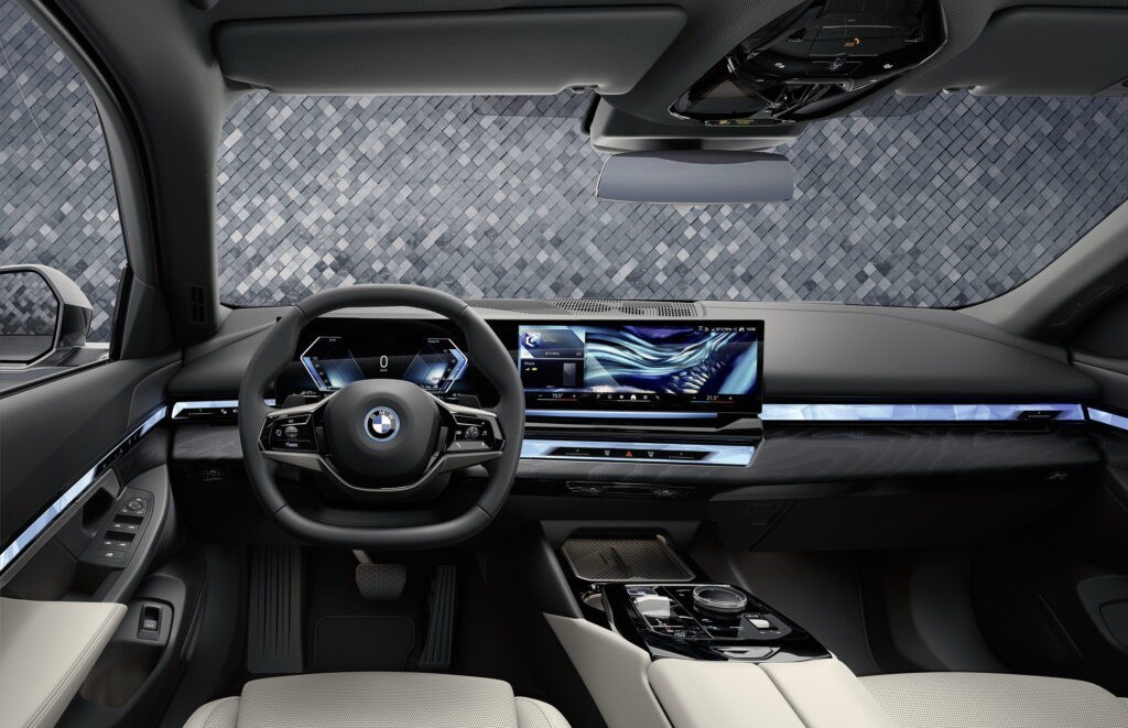 رغم عدم الاختلاف الكبير في الشكل الخارجي للسيارة، إلا أن المقصورة الداخلية للجيل الثامن قد تمت إعادة تصميمها بالكامل، حيث قام فريق "بي إم دبليو" بتعزيزها بتقنيات حديثة كان قد تم استخدامها في طرازات أخرى العام الماضي، وتأتي لوحة القيادة بشاشة مقاس 12.3 بوصة للعدادات وأخرى تعمل باللمس مقاس 14.9 بوصة للترفيه والبيانات، مع نظام تشغيل iDrive 8.5 للمرة الأولى في الفئة الخامسة وهو الأحدث من الشركة والمستخدم أيضًا في الطراز i7 M70 مؤخرًا.