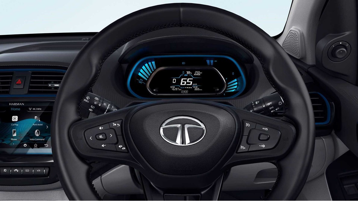 مبدئيًا، تنافس Tiago EV في فئة الهاتشباك الصغيرة مع حزمتين متاحتين من البطاريات، في إصدارين مختلفين، الإصدار الأول هو XE هو الإصدار المبدئي، مع حزمة بطارية 19.2 كيلو واط في الساعة، والتي - بفضل الوزن المنخفض - يمكنها السير لمسافة 250 كيلومترًا بشحنة واحدة تقاس بواسطة دورة القيادة الهندية المعدلة (MIDC).