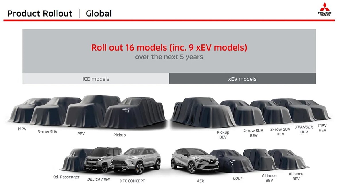 وشمل الكشف عن "تحدي 2025" الإعلان عن قائمة طويلة من الطرازات التي ستدخل المنافسة خلال الفترة المقبلة، إذ أعلنت "ميتسوبيشي" عن إطلاق 16 موديل جديد، وستكون أكثر من نصف هذه الموديلات الجديدة من السيارات المكهربة.