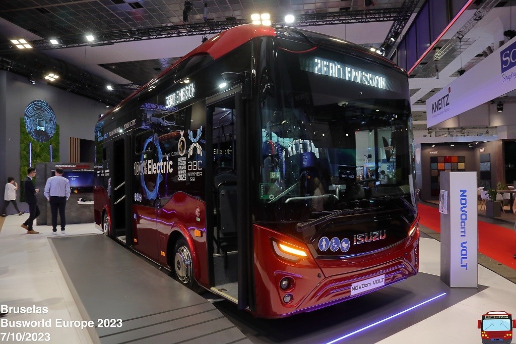 ومن ضمن الشركات الأخرى التي قمنا بزيارة جناحها شركة "إيسوزو Isuzu" التي كانت من ضمن معروضاتها الحافلة الكهربائية "سيتي فولت Citivolt 12" المكونة من 34 مقعد وتتسع لعدد 87 راكب (بين واقف وجالس)، أما بالنسبة لبطاريتها فتمكنها من السير لمسافة 480 كيلومتر قبل الحاجة لإعادة الشحن.