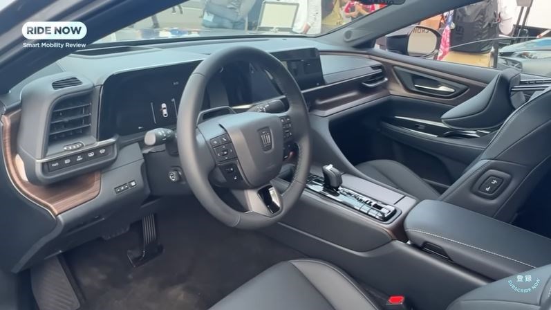 بالنسبة للمقصورة الداخلية فتحتوي على مجموعة من اللمسات الفاخرة مثل الألواح الخشبية عند لوحة القيادة والكونسول الوسطي، الفرش الجلد، المقابض الموجودة في ظهر المقاعد.. وتأتي شاشة العدادات الرقمية بمقاس 12.3 بوصة كما في باقي عائلة كراون، بجوار شاشة أخرى بنفس المقاس للترفيه وعرض البيانات، وكما في الأجيال السابقة لم يستخدم شعار تويوتا على لوحة القيادة، ولكن تم اعتماد شعار خاص بـ"كراون" وكإنها علامة فرعية مستقلة. وأخيرًا تظهر مساحة الأرجل في الخلف أكثر اتساعًا جهة اليمين، وذلك بفضل الرجوع التلقائي لمقعد الراكب الأمامي في حالة عدم الجلوس عليه.