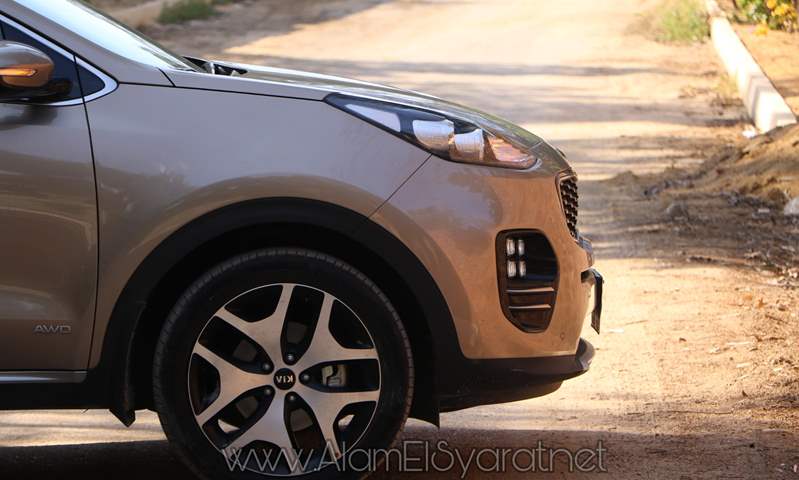 تبدو سبورتاج الجديدة مميزة للغاية من حيث التصميم الخارجي ويتعزز هذا الشعور لدينا بعد تجربة الفئة الخامسة التى تتمتع ببعض الملامح الشكلية المميزة عن باقى الفئات ومنها العجلات التى يبلغ قطرها 19 بوصة بالاضافة الى أهم ما مميز مقدمة السيارة هو وجود مصابيح الضباب التى تنقسم الى اربع وحدات LED