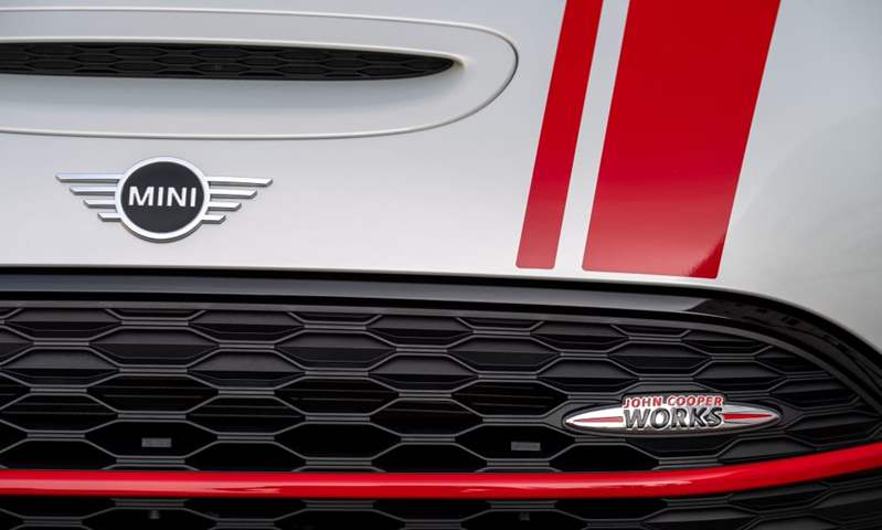 أما النسخة التي معنا وهي جون كوبر وركس الأكثر رياضية فتتميز بتطعيم من البيانو الأسود حول الأضواء الدائرية الشهيرة، بالإضافة إلى شبكة التهوية الجديدة التي جاءت باللون الأسود للجزء الداخلي منها مع شكل خلايا النحل الذي يقطعه خط أفقي أحمر في المنتصف إلى جانب شعار جون كوبر وركس، ويظهر اللون الأحمر أيضاً في شكل خطين على غطاء المحرك والمرايا الجانبية، والسقف والجوانب.