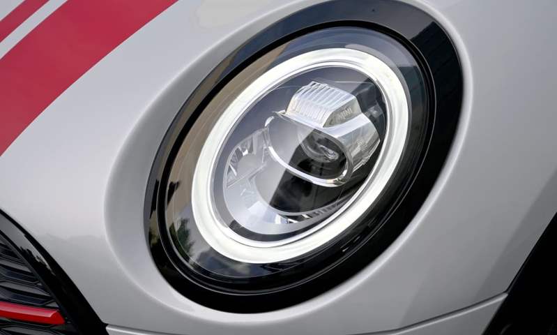 وفرت ميني لطرازها الجديد أحدث تقنيات الإضاءة ومنها أضواء LED قياسية مع جون كوبر ووركس بتصميم جديد توفر إضاءة مرتفعة ومنخفضة واضحة أكثر، والدائرة المضيئة حول المصباح الأمامي لها أكتر من وظيفة، حيث تعمل كإضاءة في وقت النهار وكإشارة إنعطاف.