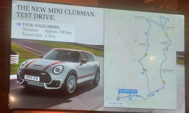 استعددت للسفر وذهبت إلى مدينة فرانكفورت وتحديداً في مركز "كلاسيك شتاد" والذي يعني اسمه بالألمانية المدينة الكلاسيكية، ولم يكن اختيار هذا المكان صدفة حيث وجدنا منذ لحظة وصولنا نسخة كلاسيكية من ميني أمام مبنى الفندق وتوقعنا أن الرحلة ستشمل زيارة مكان له علاقة بتاريخ ميني.