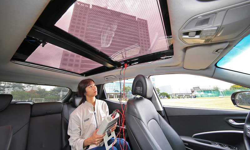 وتقوم مجموعة هيونداي بتطوير ثلاثة أنواع من أنظمة شحن الطاقة الشمسية، وهي: نظام "السقف الشمسي السيلكوني"، ونظام "السقف الشمسي شبه الشفاف"، ونظام "الغطاء الشمسي خفيف الوزن"، الذي يتم وضعه على جسم السيارة بالكامل.