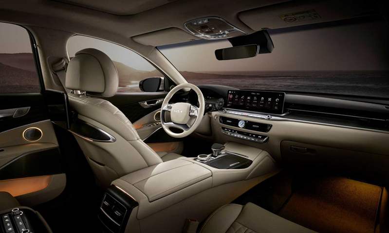 وحين كشفت كيا عن السيارة لم تقدم تفاصيل حول التصميم الداخلي لها، وهي تفعل ذلك الآن ليكون عملاؤها على علم بجميع التفاصيل. وتأتي المقصورة معدلة، حيث تم إلغاء نظام المعلومات والترفيه السابق مقاس 12.3 بوصة لإفساح المجال لإعداد أكبر بحجم 14.5 بوصة.