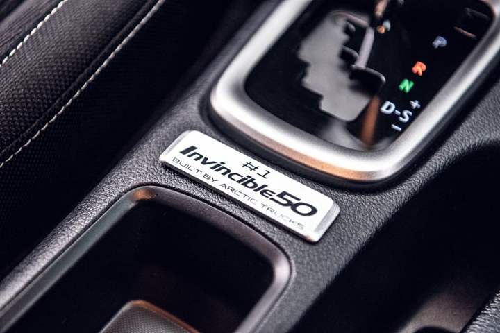 وتظهر أقواس العجلات الأربع بشكل أوسع وقد تم تجهيز السرير الخلفي بقضيب تمديد مزدوج، ويمكن ملاحظة المصابيح الـLED عالية الطاقة، وقد تم تزويد السيارة باللوحات الطينية من Arctic Trucks بالإضافة إلى علامة Invincible 50 في الخارج والداخل، وتأتي جميع نسخ الإصدار الخاص باللون الأسود اللامع..