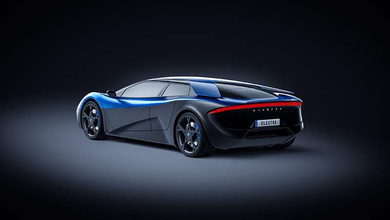 ولمزيد من التميز لا يأتي جسم إليكسترا بلون واحد، فلأنها مصنوعة من ألياف الكربون فائقة الخفة والمتانة فإن نصفها السفلي محتفظ بلون الألياف الأسود، بينما حصل النصف العلوي على لون أزرق لامع يوحي إليك بوجود الكهرباء على الفور، وبالالتفاف نحو المؤخرة ستجد جناحًا خلفيًا مزدوجًا يجعل السيارة تبدو كما لو كانت على وشك الطيران، وإضاءتها عبارة عن ثلاثة خطوط متوهجة ممتدة أفقيًا بعرض المؤخرة، وبشكل عام تساعد الخطوط المنكسرة المكونة لجسم السيارة في الإيحاء بأنها ماسة فقدت شفافيتها فأطلت باللونين الأسود والأزرق..