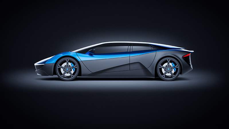أما من ناحية التصميم فالحقيقة أنها سيارة محيرة؛ فقد صُممت في سويسرا بينما تم بناؤها في ألمانيا وسيتم إنتاج النسخ القادمة منها يدويًا بالقرب من مدينة شتوتجارت الألمانية، لكنها رغم ذلك تذكرك بأناقة وإطلالة السيارات الإيطالية، فنظرة جانبية لها قد تعيد إلى ذهنك صورة سيارات لامبورجيني، بانتفاخين بارزين أعلى العجلتين الأماميتين وسقف ينحدر بحدة نحو المؤخرة المرتفعة ليبدو كما لو كان مدببًا عند نهايته، لكن التفاصيل تخبرك أن للسيارة شخصيتها المستقلة، فعيناها عبارة عن كريستالات LED تستقر رأسيًا على جانبي غطاء المحرك الذي يأتي هو نفسه بخطوط هندسية بارزة..