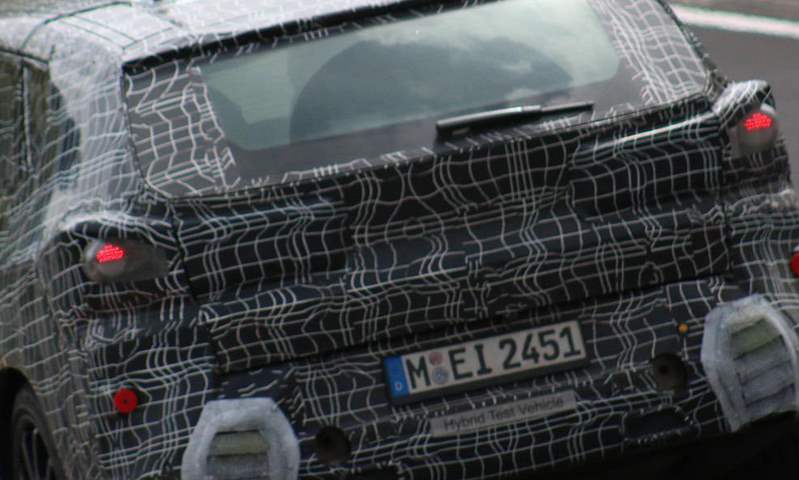 النهاية الخلفية مثيرة للاهتمام بنفس القدر. يُظهر التصميم تصميمًا قائمًا مع خط سقف يشبه الكوبيه، وجزء صغير من النافذة الخلفية من باب صندوق السيارة الضخم. يبدو أن المصابيح الخلفية تحافظ على شكل L النموذجي، لكنها واسعة جدًا، وما زال المصد الخلفي مغطى بالبلاستيك والتمويه.