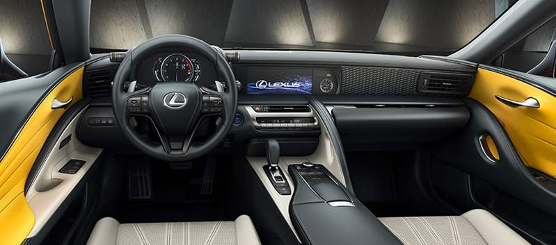 ما يلفت الأنظار في البداية هو اللون النابض بالحيوية والشبكة شديدة الاتساع التي توحي بأنها مستعدة لابتلاع كل ما يمر أمامها من هواء، أما في الداخل فلا تتخلى لكزس عن اللمسات الصفراء بل تنثرها في أرجاء المقصورة، فنراها في شكل أجزاء من جلد ألكانتارا الفاخر بجوار ألواح الأبواب السوداء صانعةً مزيجًا لونيًا رائعًا، كما تراها في الخياطة الصفراء الأنيقة التي تضم جلد ألكانتارا الذي يكسو المقاعد..
