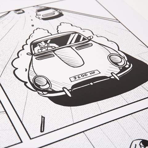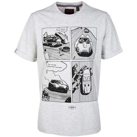 كما يظهر تصميم فن البوب على الإصدار المحدود من التيشرتات المطبوعة، المحصورة بعدد 960 قطعة، والمصنوعة من قماش جيرسي من القطن الرمادي الناعم، ضمن تصميم كلاسيكي يعكس أصول سيارة E-type في الستينيات.