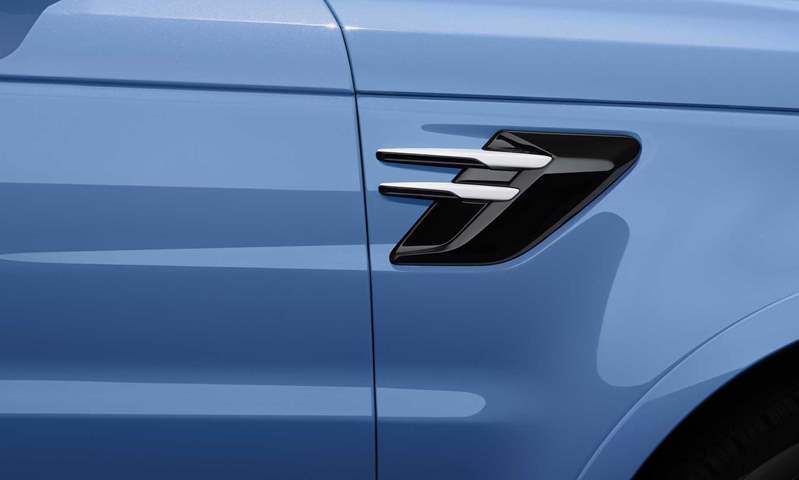 دلل قسم عمليات المركبات الخاصة في لاند رور الإصدار الخاص المطلق بتشطيبات فاخرة مثل حروف "رينج روفر" السوداء المخرشة على غطاء المحرك والباب الخلفي، تكملها حواف بيضاء تظهر أيضًا على زخارف الرفارف الجانبية. تستقبل السيارة الفخمة غطاء محرك السيارة المصنوع من ألياف الكربون بلون الهيكل وعجلات مقاس 22 بوصة بتصميم خمسة قضبان منقسمة وملاقط فرامل سوداء في الخلف. هذا اللون الأسود موجود أيضًا على أغطية المرايا الجانبية والشبكات الأمامية ومناطق أخرى.