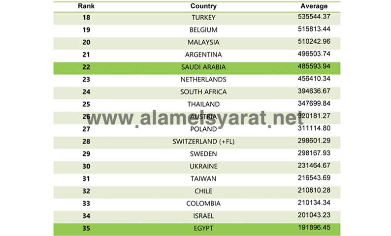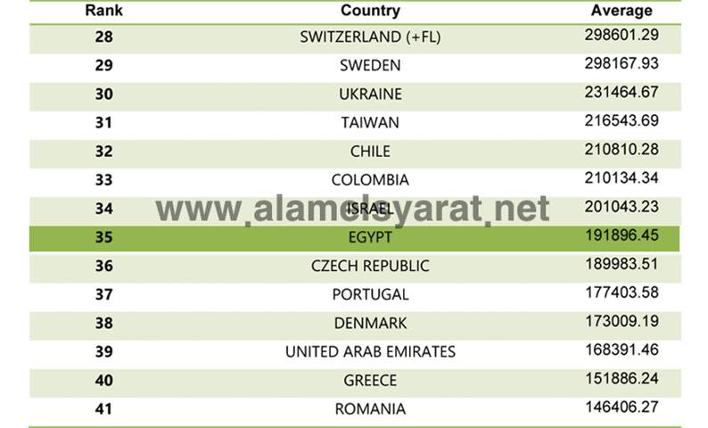 يتضح من الحساب السابق أن مصر تقع بمتوسط مبيعاتها منذ عام 2005 إلى عام 2017 في المرتبة الـ35 حيث بيعت حوالي 192,000 وحدة بسوق السيارات المصري في المتوسط.