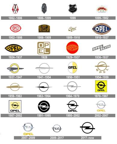 أما شعار "أوبل" الذي نعرفه اليوم فقد مر بعدة مراحل بدأت في فترة الخمسينيات عندما كان يتكون من شريحتين مستطيلتين تم وضعهما بشكل مائل، واحتوت إحداهما على اسم "Opel" والأخرى "Blitz"، وتحول بعدها إلى شكل أقرب إلى حرف Z .
