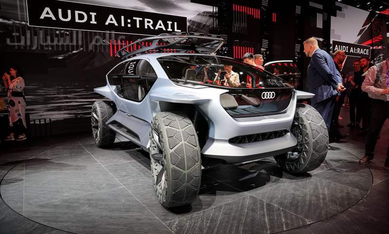 كشفت أودي عن نموذج AI:TRAIL كواترو وهو سيارة كهربية مخصصة للأراضي الوعرة تعتبرها الشركة مجرد دراسة تصميمية تجمع بين القيادة الآلية والقدرات العالية على الأراضي الوعرة.