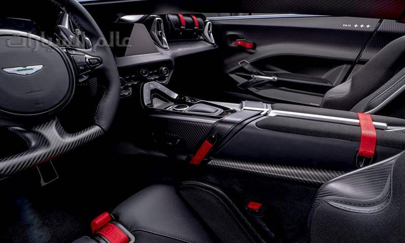 وللتخلص من أكبر قدر من الوزن، صممت أستون مارتن الأجزاء الداخلية من ألياف الكربون، مع تصميم للمقعدين بشكل منفصل مستوحى من تصميم الطائرات المقاتلة، لتقديم شكلًا فريدًا، وبلمسات فاخرة.