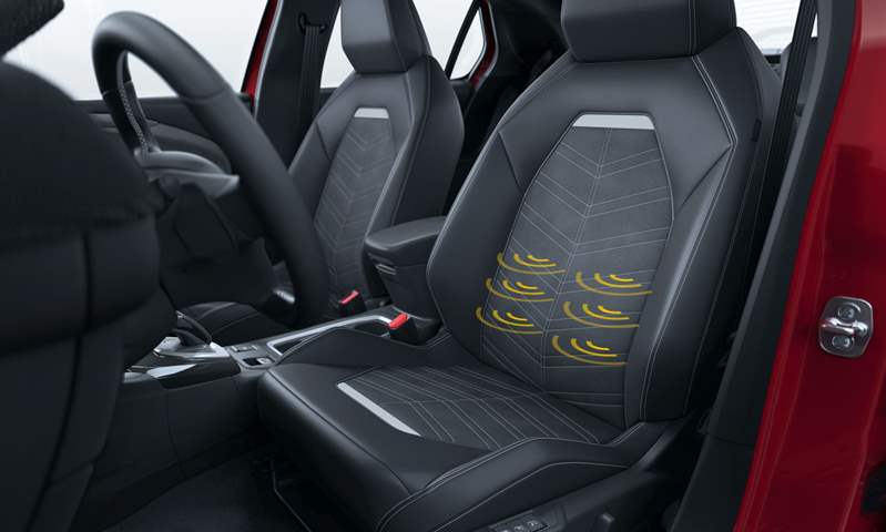 هناك أيضًا حواف من جلد ألكانتارا الفاخر مع أغطية المقاعد السوداء، ويأتي المقعدان الأماميان بقابلية للتعديل بستة اتجاهات، كما يوفر مقعد السائق القابل للضبط كهربائيًا وظيفة التدليك.