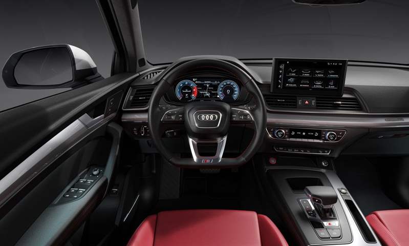 في الداخل تأتي السيارة بمقصورة ذات لون أسود أو رمادي داكن مع حواف عتبات من الألومنيوم تحمل شعار S. وتتوافر مقاعد رياضية قابلة للتعديل كهربائيًا تتميز بشعار S المنقوش في ثلاثة خيارات تنجيد مختلفة، حيث يتم تقديم مزيج من الجلد/ الجلد الصناعي كتجهيز قياسي، بينما يتوافر مزيج من الجلد ومادة ديناميكا، وهي مادة تتكون بشكل أساسي من البلاستيك المعاد تدويره وتحل محل جلد ألكانتارا، ويتوافر أيضًا خيار جلد نابا التاعم باللون الأحمر. وقد حصلت المقاعد وعجلة القيادة على خيوط متباينة باللون الأحمر.