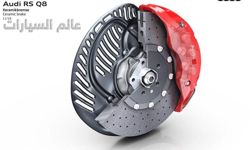 مع القدرة الكبيرة لمحرك RS Q8 كان لابد من نظام فرامل يمكنه التحكم بهذه القوة الكبيرة، وجاءت الفرامل بتطوير RS مطورة حديثاً بالكامل، وهي تتوفر بشكل اختياري من السيراميك مع ملاقط بألوان الرمادي، الأحمر أو الأزرق، مع أسطوانات في الأمام بقطر 440 ملم و370 ملم في الخلف، وتوفر هذه الأسطوانات عمر افتراضي طويل، وتعمل عناصر انحراف الهواء بها على التخلص من الحرارة بشكل سريع والحماية ضد فقدان الفرامل لفعاليتها بسبب الحرارة، وبالمقارنة مع الأسطوانات المصنعة من الفولاذ تأتي هذه الأسطوانات أخف وزناً بـ 34 كيلوجرام وهو ما يقلل بشكل كبير من الكتل غير المستقرة والتي تؤثر بشكل سلبي على راحة الركوب.