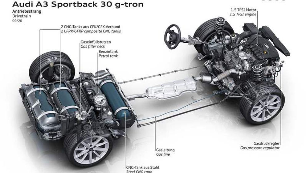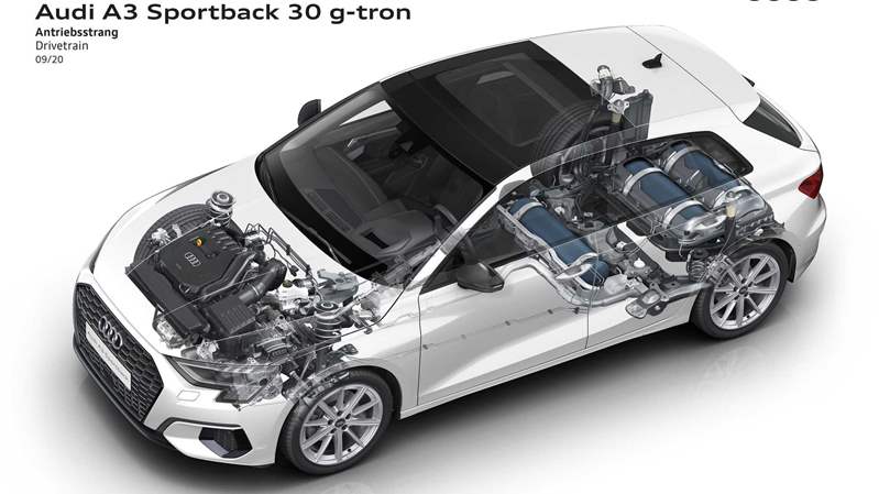 تعتمد السيارة -التي تعمل بنظام الدفع الأمامي- على الغاز الطبيعي المضغوط أو الميثان الحيوي في تغذية محركها TFSI، والذي يأتي بسعة لترية قدرها 1.5 لترًا ويتصل بشاحن تيربو، وينطلق منه قوة 131 حصانًا بعد تحديث مكوناته الداخلية.. ويتصل المحرك بناقل حركة أوتوماتيك ذي سبع سرعات، بحيث تستطيع هذه الهاتشباك الألمانية الانطلاق من ثباتها إلى سرعة 100 كم/س خلال 9.7 ثوان، فيما تتجاوز سرعتها القصوى 210 كم/س.