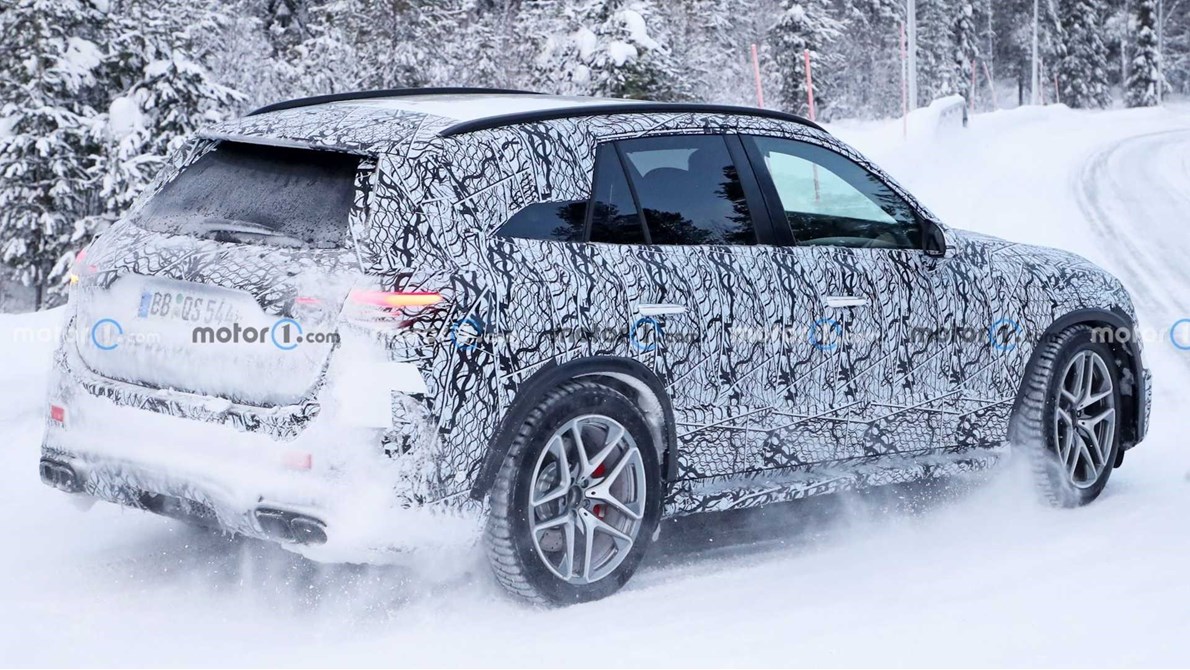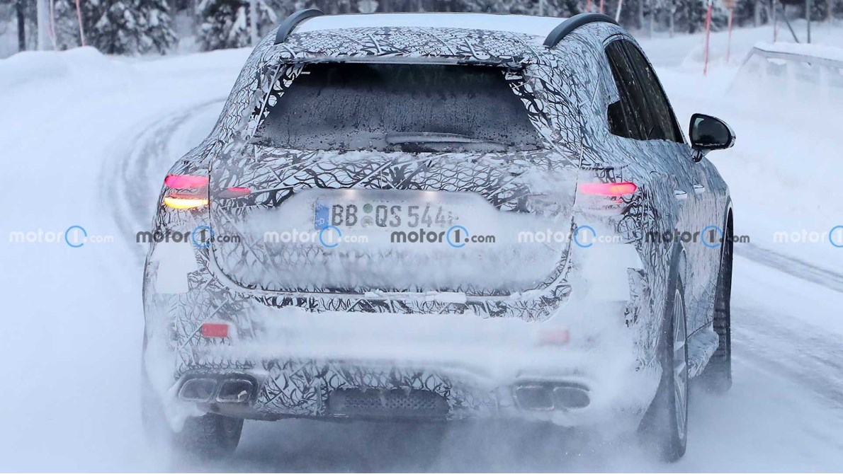 تبرز السيارة مع مظهرها الأعرض وشبكها المعقد والعجلات الكبيرة، وعلى الرغمن من أن التفاصيل مازالت مختبئة تحت التمويه، إلا أننا نرى في الخلف أنابيب العادم الرباعية، حيث تبدو GLC أكبر قليلاً من الطراز الذي تحل محله.