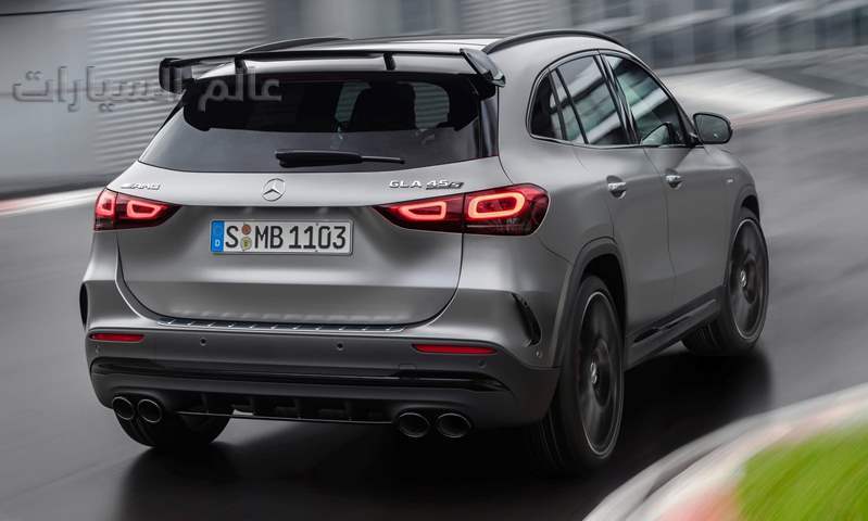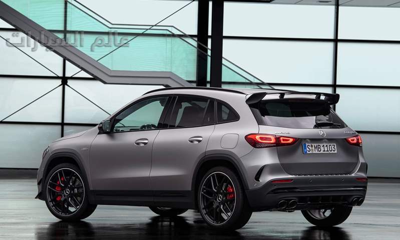 أما الجزء الخلفي، فيتميز بفوهات عادم مزدوجة في الجانبين، وتتميز النسخة "GLA 45 S" بفوهات عادم بيضاوية أكبر حجمًا من النسخة القياسية، مع إضاءة خلفية مقسمة إلى قطعتين، وجناح علوي يحسن من الأداء الدنياميكي للهواء حول السيارة.