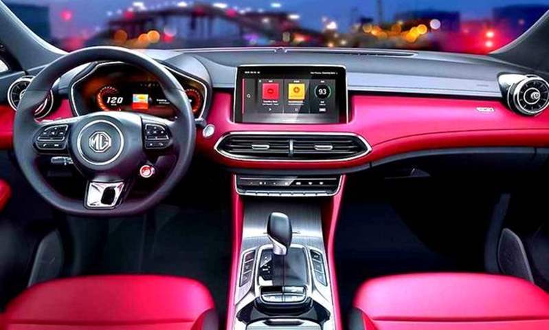 تأتي المقصورة الداخلية مستوحاة من السيدان الرياضية MG GT الخاصة بالسوق الصيني -والتي تم وقف إنتاجها في 2018- فحصلت على عجلة قيادة ذات تصميم رياضي، وفي المنتصف تطفو شاشة كبيرة الخاصة بالترفيه وعرض البيانات وأصبحت فتحات المكيف أسفلها، وعلى جوانب لوحة القيادة تبرز فتحات المكيف الأخرى في شكل جديد مستدير. أما الجزء الأكثر لفتًا للانتباه بشكل حاد في التصميم الداخلي هو ذلك اللون الأحمر الذي يغزو أنحاء المقصورة، فيظهر عند المقاعد وجوانب الأبواب ولوحة القيادة والكونسول الوسطي.