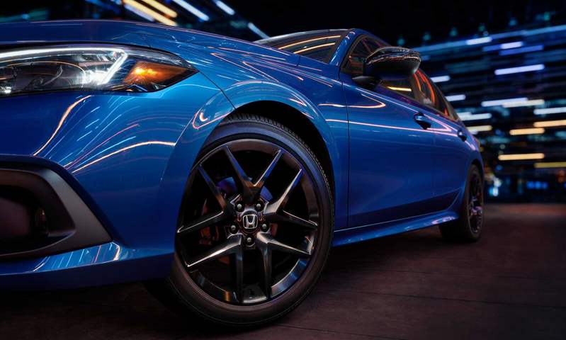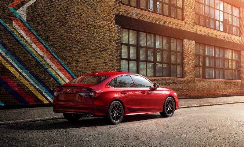 وتتصل المقدمة بالمؤخرة من خلال خط بارز على جانبي السيارة يمتد للخلف حتى يتصل بأطراف المصابيح الخلفية الواسعة ذات تقنية إضاءة LED. فيما تؤكد هوندا أن سيفيك الجديدة تتمتع ببنية أكثر صلابة وفي نفس الوقت أخف وزنًا. وتتوفر السيارة في 8 ألوان خارجية منهم 3 درجات جديدة من الرمادي والأزرق.