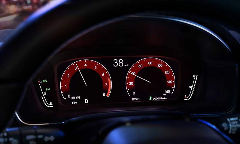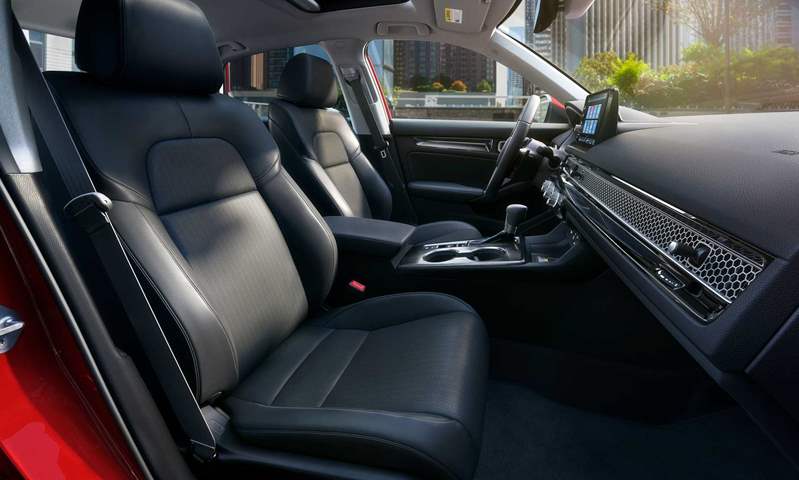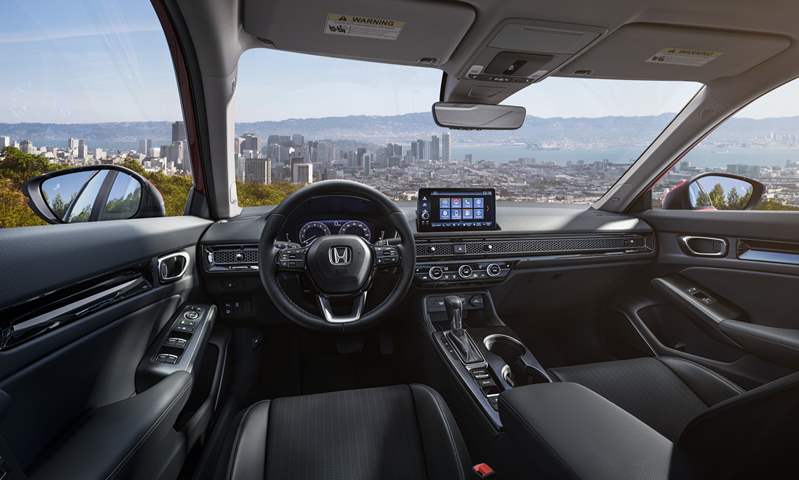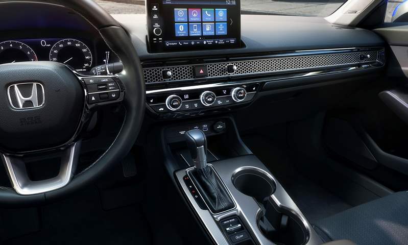 وساهم تحريك قاعدة الزجاج الأمامي في تقليص الجزء العلوي من لوحة القيادة بشكل يساهم في تحسين الرؤية، خاصة مع تصميمها بخطوط أقل لتقليل الانعكاسات على الزجاج. واستمرارًا للمسات الكلاسيكية تمتد بعرض لوحة القيادة شبكة ضيقة بفتحات مستوحاة من شكل خلية النحل، تختبئ وراءها فتحات المكيف. وعلى عكس الكثير من الطرازات الحديثة التي أصبح فيها التحكم في مكيف الهواء عبر شاشة لمس، تأتي هوندا سيفيك بمفاتيح للتحكم في التكييف وأخرى لضبط النظام الصوتي، والذي جاء للمرة الأولى 12 مكبر صوت من Bose.