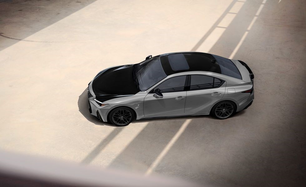أما بالنسبة للفئة IS350 التي تعمل بمحرك V-6 فقد حصلت على الإضافات الخاصة بها أبرزها طلاء خارجي ثنائي اللون، يتكون من رمادي Incognito يغطي غالبية أجزاء السيارة الخارجية، بينما السقف وغطاء المحرك بلون أسود Obsidian .. وتأتي هذه الفئة بعجلات Enkei مقاس 19 بوصة بلون داكن، أما المقصورة فكما في الفئة السابقة باللون الأسود NuLuxe.. ومن المقرر إنتاج 480 نسخة فقط من هذه الفئة.
