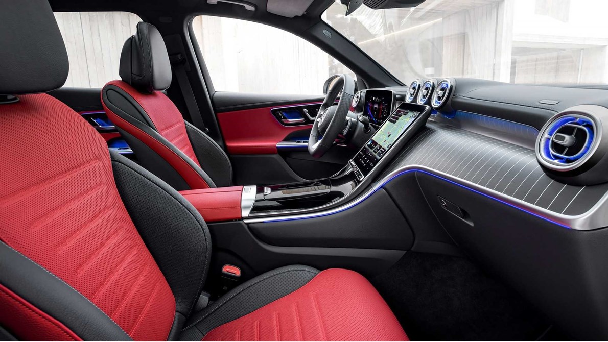 في الداخل ، حصلت GLC 2023 على ترقية جوهرية مستوحاة من S كلاس. تجمع مرسيدس بين شاشة للسائق مقاس 12.3 بوصة على لوحة العدادات مع شاشة مركزية مقاس 11.9 بوصة تتميز بتقنية المعلومات والترفيه MBUX من الجيل الثاني للشركة. تتمتع لوحة القيادة والأبواب بتصميم جديد ، وتأتي الكروس أوفر مليئة بالميزات القياسية مثل الشحن اللاسلكي والمقاعد الأمامية المدفأة. أعادت مرسيدس أيضًا تنظيم مجموعات المعدات الخاصة بها.