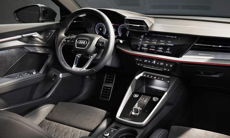 كما تركز قمرة القيادة في سيارة أودي A3 الجديدة بالكامل على السائق، ويبدأ ذلك بالتصميم الداخلي وينتهي بعناصر العرض والتحكم، وبالتالي تميل لوحة العدادات مع شاشة اللمس MMI المركزية قليلًا لتركز على السائق، ويبلغ قطرها 10.1 بوصة، بالإضافة إلى لوحة عدادات بمقاس 12.3 بوصة تقدم طرق عرض مختلفة، بما في ذلك الرسومات الرياضية والتخطيط الديناميكي بشكل خاص، مع مؤشرات السرعة وRPM مع عرض بعض المعلومات المهمة على الزجاج الأمامي في مجال رؤية السائق.