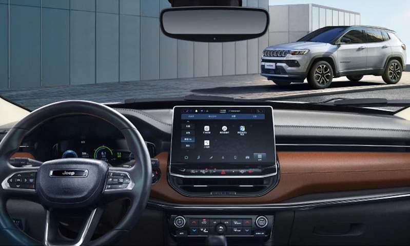 وللمرة الأولى تظهر تفاصيل المقصورة الداخلية التي حصلت على تعديلات مختلفة تمامًا عما كانت عليه كومباس في السابق، فحصلت لوحة القيادة على شاشة لمس جديدة مقاس 10.1 بوصة للترفيه وعرض البيانات تطفو فوقها في المنتصف، وأسفلها مباشرة فتحات المكيف الرقيقة بعد استبعاد التصميم المربع للفتحات في الطرازات المتاحة حاليًا، وتراصت مفاتيح التحكم أسفل الفتحات.
