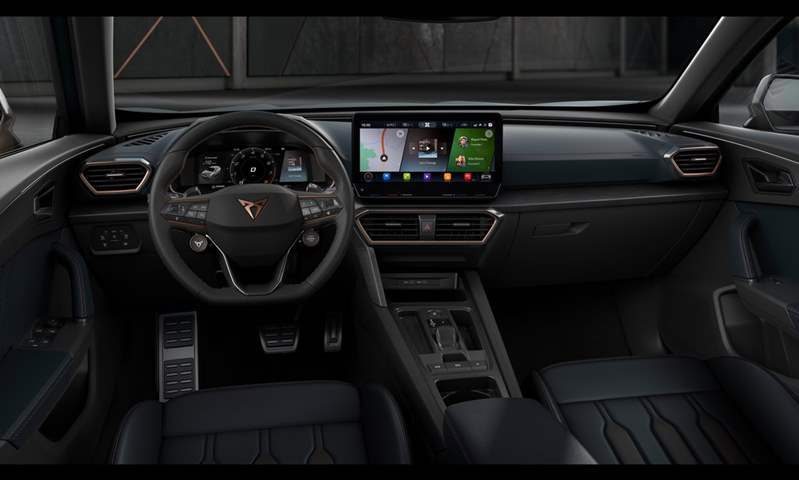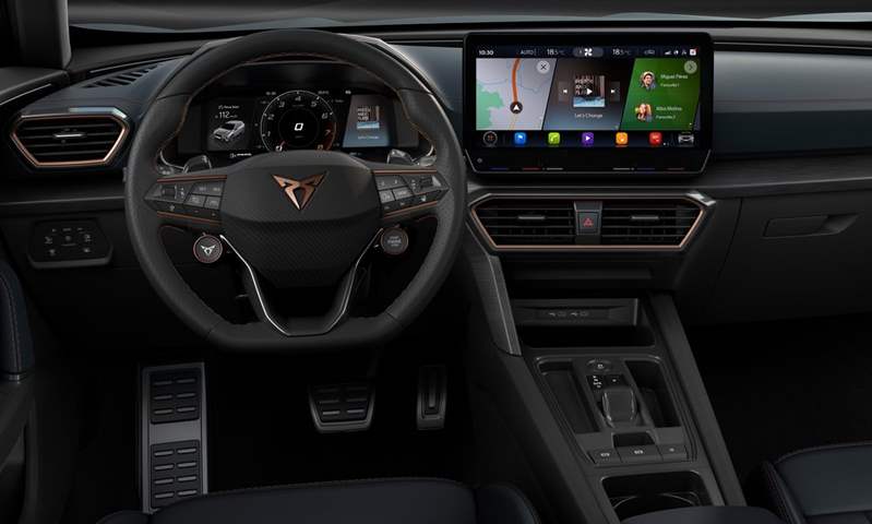 أما الجزء المركزي في لوحة العدادات، فهو شاشة تعمل باللمس مقاس 12 بوصة توفر الكثير من المهام وخدمات الاتصال لجميع الركاب مع ازرار أقل، بالإضافة إلى عجلة قيادة متعددة المهام مزودة بالكثير من الإضافات الرقمية.