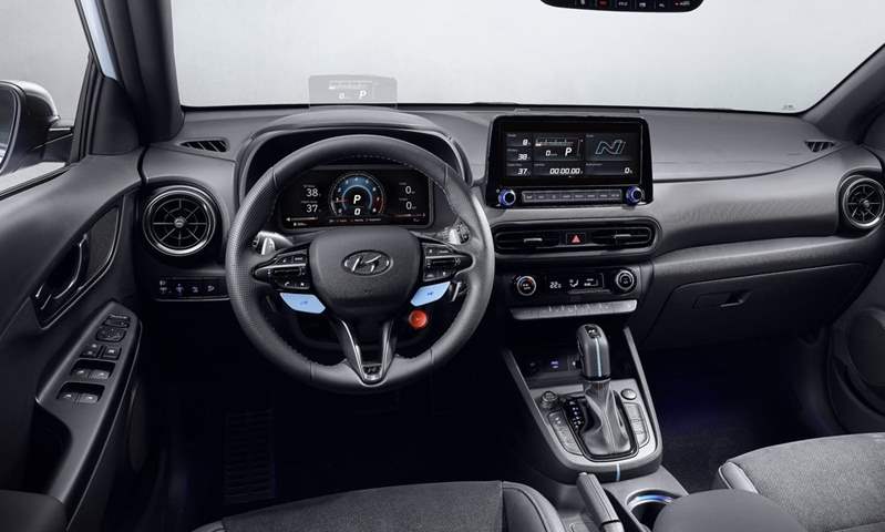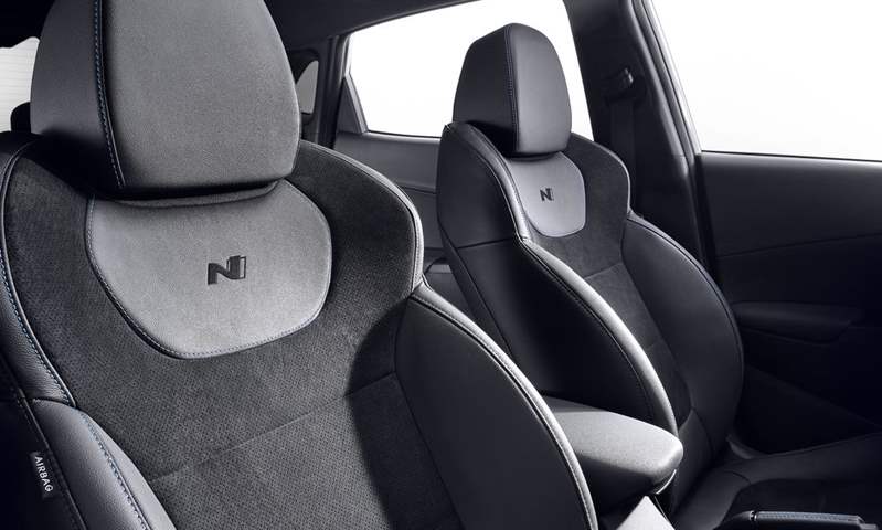 في الداخل تتميز المقاعد الأمامية الداعمة بكسوة من الجلد المدبوغ مع إضافات من الجلد الصناعي، ما يجعلها مريحة مثل المقاعد ذات الشكل المماثل الموجودة في السيارة سوناتا N Line. وتأتي عجلة القيادة بتصميم ثلاثي الأذرع، وهي مزدحمة بالأزرار التي تتيح التحكم في وظائف السيارة، لتضمن ألا يرفع السائق يديه عن عجلة القيادة ولا يبعد عينيه عن الطريق.
