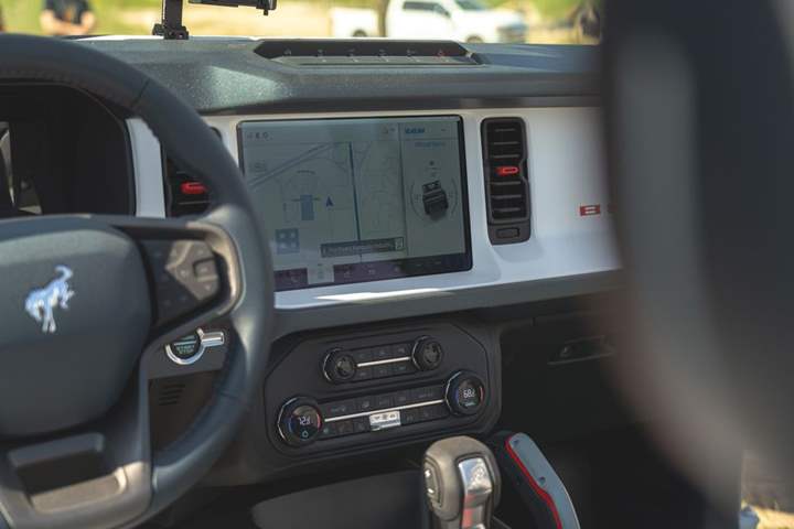 زودت برونكو بأحدث برنامج 4Sync في سيارات فورد بشاشة لمس مقاس 8.0 أو 12.0 بوصة لتزين منتصف لوحة القيادة، وتسمح الإعدادات بالتحديثات عن بعد مع إمكانية الاتصال بالخدمة سحابيًا أو هاتف المستخدم الذكي لاسلكيًا، ويدعم نظام المعلومات والترفيه خدمتي أبل كار بلاي وأندرويد أوتو، ونقطة اتصال واي فاي تعتمد على الاشتراك ويمكن الترقية لإضافة نظام الملاحة المدمج ونظام صوتي استيريو B&O.
