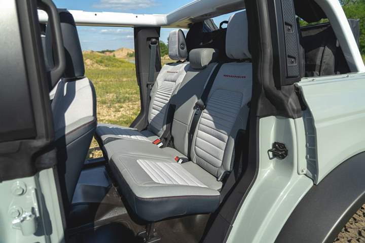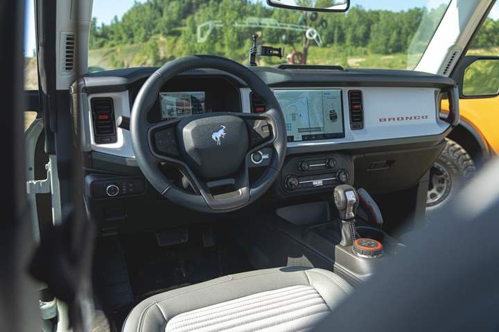 تتوفر برونكو 2021 ببابين أو أربعة أبواب، وأسطح ناعمة أو صلبة وألواح قابلة للإزالة للاستمتاع بالهواء الطلق، وتحتوي برونكو على بعض الإضافات الجيدة مثل الرف المدمج في الجزء العلوي من لوحة العدادات والتي تسمح لك بتثبيت الهواتف الذكية أو كاميرات التصوير الصغيرة مثل جو برو ويمكن توصيلها بمنافذ كهربائية 12 فولت.