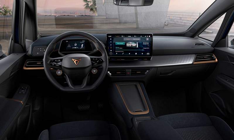 تستخدم السيارة بورن الكهربائية بالكامل شاشة تعمل باللمس مقاس 12 بوصة، وهي بذلك أكبر من الشاشة الموجودة في مقصورة ID.3 التي يبلغ مقاسها 10 بوصات. وتحتوي المقصورة على مقاعد رياضية مع مساند رأس مدمجة، بينما تحتوي عجلة القيادة على زوجين من الأزرار الإضافية الحصرية لسيارة كوبرا.