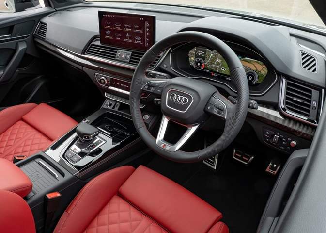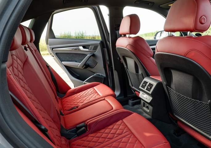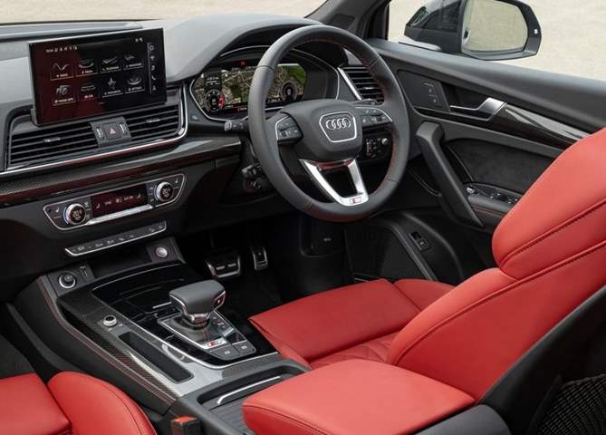 تم تصميم المقصورة الداخلية للسيارة SQ5 Sportback TDI باللون الأسود أو الرمادي الداكن، كما تم تزيين حواف عتبات الأبواب المضاءة من الألمنيوم بشعارات S. هناك خيار من ثلاثة خيارات تنجيد للمقاعد الرياضية القابلة للتعديل كهربائيًا بشعارات S. خياطة متباينة تزين المقاعد وعجلة القيادة، وتتوافر وظيفة التدليك وتهوية المقاعد عند الطلب. يعتبر الألومنيوم المصقول معيارًا للتطعيمات، والبدائل عبارة عن تصميمين كربونيين وتشطيب بيانو.