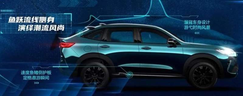 من الجوانب يمكن ملاحظة تصميم خط السقف من الخلف أكثر انحدارًا fastback كما في بي إم دبليو X4، فيما يحتوي باب الصندوق الخلفي على سبويلر مزدوج، ولا تتصل المصابيح الأمامية مع بعضها بعرض المؤخرة كما في H6، وفي الأسفل يظهر زوج من الإطارات البارزة على جانبي المصد الخلفي تحتوي على فتحات العادم.