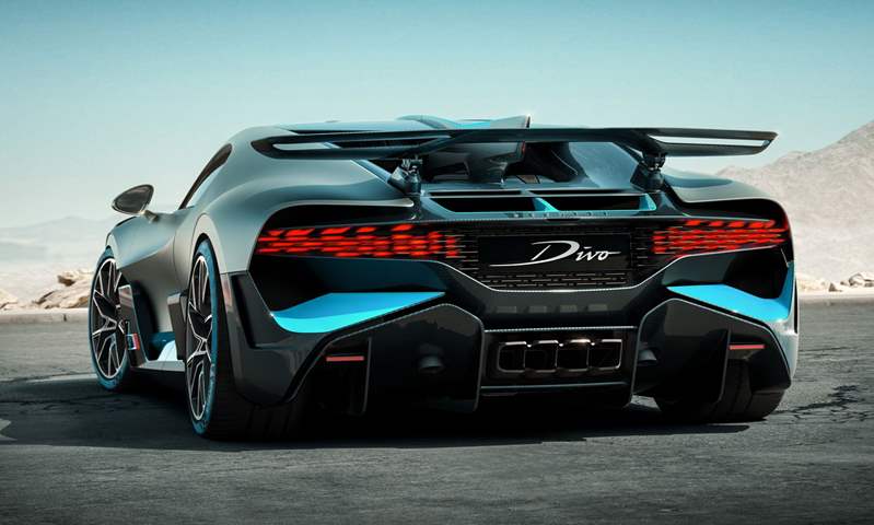 أهم ملامح مؤخرة السيارة تتمثل فى السبويلر الخلفي الذى يمكن ضبط أرتفاعه والذى زاد عرضه بحوالي 23% عن مثيله فى موديل شيرون.