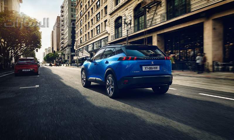 الخيار الكهربائي يأتي في شكل طراز e-2008، وهو مجهز ببطارية بسعة 50 كيلووات/ ساعة مع محرك كهربائي بقوة 136 حصان، ويمكن شحن 80% من سعة البطارية بواسطة شاحن سريع بقوة 100 كيلووات خلال 30 دقيقة فقط، ويمكن لـ e-2008 السير بواسطة الطاقة المحزنة في البطارية لمسافة تصل إلى 308 كم، وبفضل وضع البطارية أسفل أرضية السيارة فلم تخسر e-2008 من سعة حقيبتها الخلفية أو المساحة الداخلية أي ميللي متر.